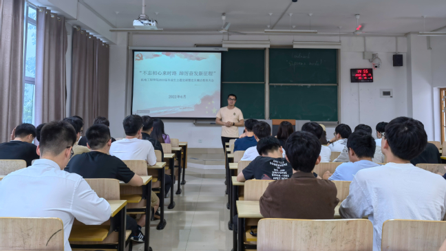 6月22日下午,机电工程学院2022届毕业生党员“不忘初心来时路 踔厉奋发新征程”主题党课暨毕业生党员廉洁教育大会在旗山校区教学楼205组织开展。毕业班辅导员和在校毕业班学生党员代表近80人参会。