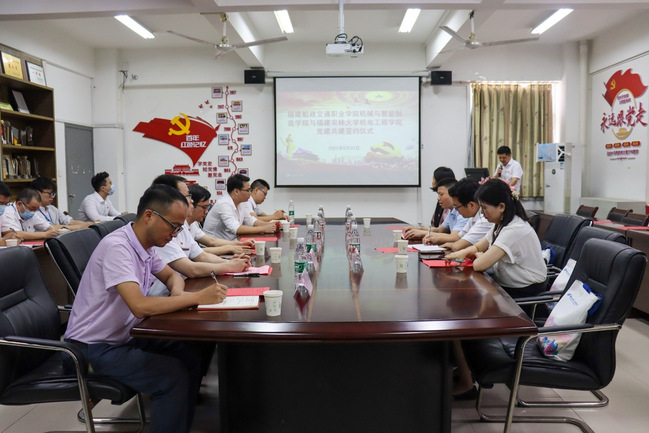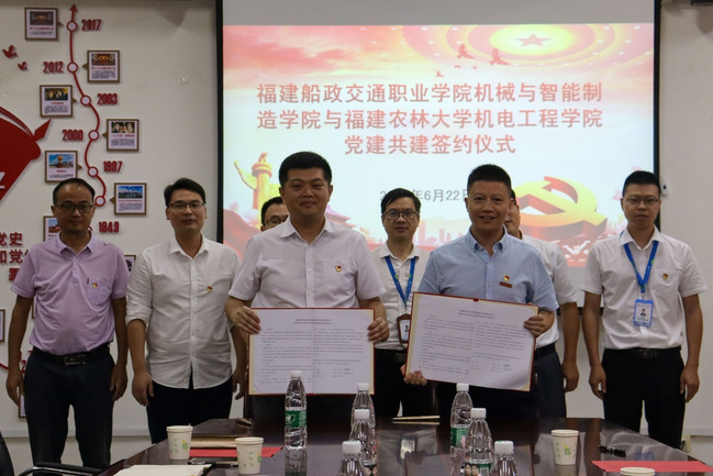 6月22日,机电工程学院与福建船政交通职业学院机械与智能制造学院举行党建共建签约仪式。福建船政交通职业学院党委副书记陈宜大,机械与智能制造学院党总支书记林少丹、院长杨开怀,机电工程学院党委副书记(主持工作)修新田、院长叶大鹏等参加签约仪式。