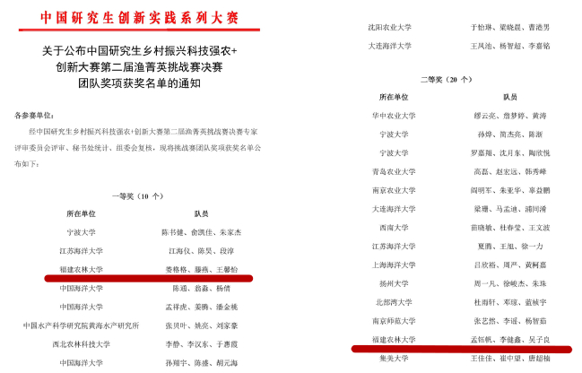 据悉,渔菁英挑战赛是实践育人和创新创业模式的一项创新,是我国水产学科和渔业领域人才培养领域里一项重要赛事,在学科行业内享有较高地位和较大影响力,旨在更好贯彻落实新时代全国学位与研究生教育“立德树人、服务需求、提高质量、追求卓越”的指导思想和总体目标,助力青年研究生成长成才、促进研究生教育内涵式发展起到良好的促进作用。本届大赛最终评选出一等奖团队10支,二等奖团队20支和三等奖团队35支。