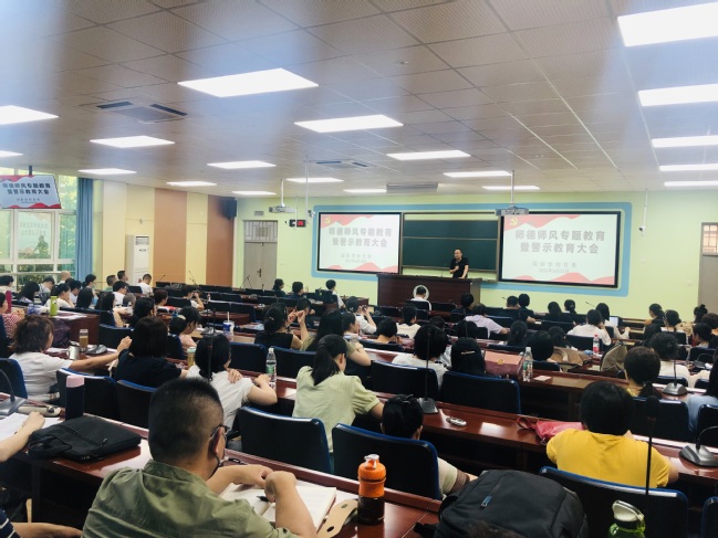 6月23日下午,国际学院党委在禧强楼206召开师德师风专题教育暨警示教育大会,学院全体教职工参加,院长吴锦程主持会议。