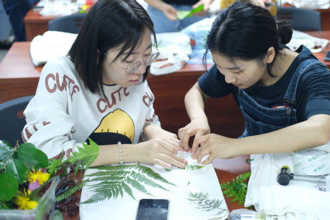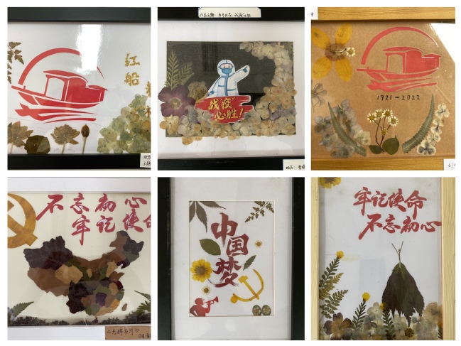 本次创意美育活动以党建、抗“疫”和生态文明理念宣传为主题,把党史学习教育、红色文化传承、绿色理念与艺术创作相结合,开展了主题压花和植物敲拓染两个类型的手工制作活动,共制作主题压花作品近30幅,主题拓染作品200多幅。