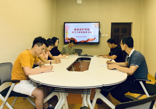 6月28日下午,植物保护学院在博学楼706召开政工干部专题学习研讨会,围绕大思政课建设、安全稳定工作和党风廉政建设进行学习研讨,学院全体政工干部参加会议。