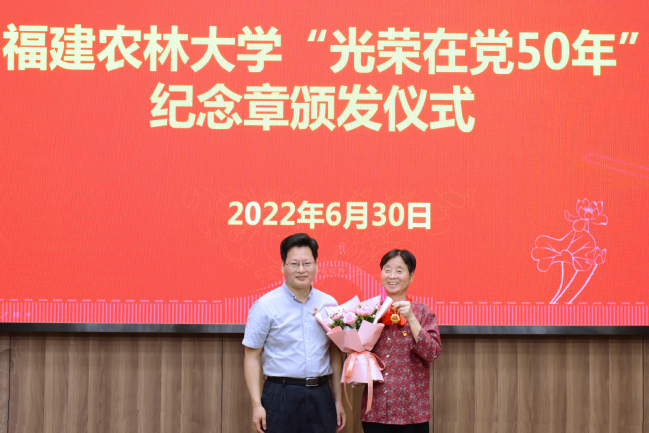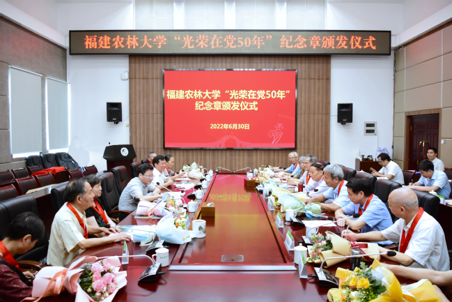 6月30日上午,我校在明德楼武夷厅举行“光荣在党50年”纪念章颁发仪式。校党委书记王建南,校党委常委、副校长黄炎和及“光荣在党50年”老党员代表出席颁发仪式。颁发仪式由黄炎和副校长主持。