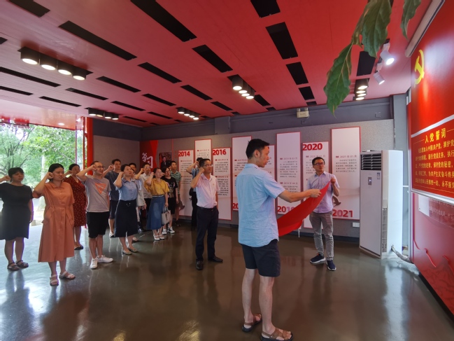 参观过程中,苏健涵带领党员同志们重温了入党誓词,回顾了入党宣誓时的铿锵承诺。