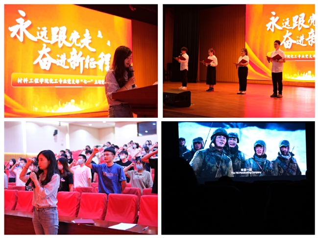 7月3日晚,材料工程学院化工专业党支部在大报告厅召开“永远跟党走,奋进新征程”—“七一”主题党日活动。化工党支部全体党员和学院其他党支部党员和积极分子代表参加活动。