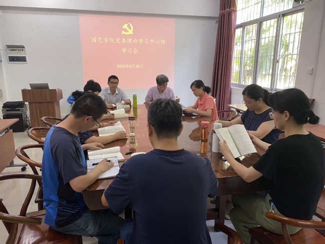 6月28日,园艺学院党委理论学习中心组专题学习研讨《闽山闽水物华新——习近平福建足迹》。学院党委理论学习中心组成员参加会议,学院纪委委员、团委副书记列席会议,学院党委书记肖红新主持会议。
