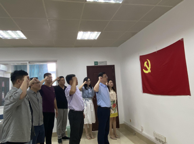 为纪念中国共产党成立101周年,迎接党的二十大胜利召开,研究生院党支部组织了“迎七一、铸信仰”庆祝“七一建党节”主题活动。研究生院全体教职工参加了本次活动,本次主题活动由重温入党誓词、学习《中国共产党章程》、学习“全省优秀共产党员”李翀同志先进事迹、观看微党课展播四个环节组成。