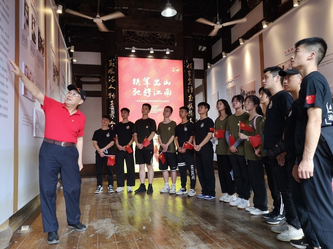 展览共分为“全民族抗战形成的历史背景”“中国共产党领导的抗日武装力量成立”“新四军与福建的渊源”三个部分。实践教学活动得到了省新四军研究会的大力支持,会长刘云刚在参观过程中将新四军与福建的渊源和抗战往事娓娓道来。福建是新四军的发源地之一。85年前,福建红军和游击队取得了艰苦卓绝的三年游击战争胜利。根据中共中央的指示,在闽西、闽北、闽东、闽粤边、闽赣边和闽中6块游击区坚持斗争的红军游击队,出山整编为新四军第二、第三支队,奔赴华中抗战前线,为夺取抗战胜利付出了巨大牺牲,作出了巨大贡献。