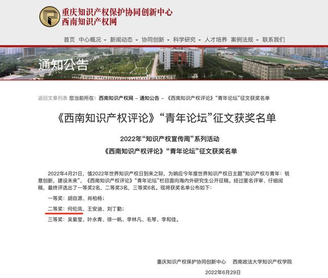获奖名单链接:https://xinanipr.swupl.edu.cn/notice/3be75c968d8146ceb28b7f91053908c6.htm