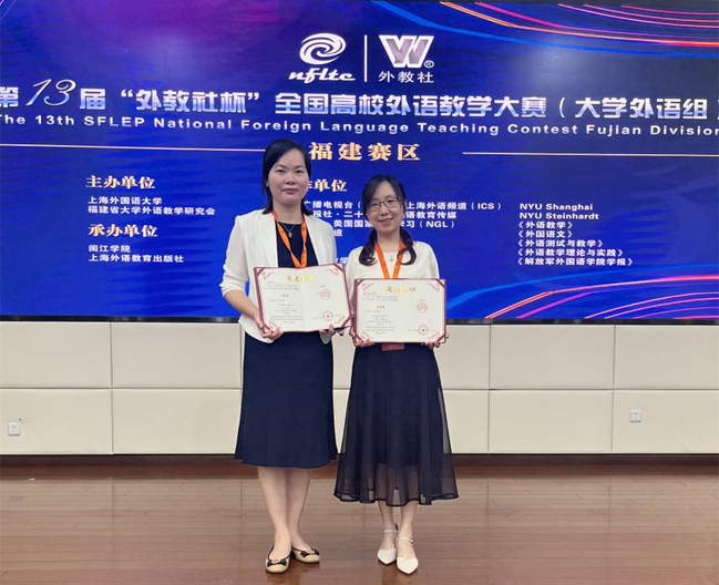 7月6-7日,由福建省大学外语教学研究会和上海外国语大学主办的第十三届“外教社杯”全国高校外语教学大赛(大学英语组)福建赛区复赛和决赛在闽江学院举行,比赛分为大学英语视听说课组和综合课组。经过两天的激烈角逐,我校国际学院公共外语教学部林敏老师荣获视听说课组一等奖,蓝书剑老师荣获综合课组三等奖,充分展现了我校国际学院青年教师专业的素质能力和积极的精神面貌。