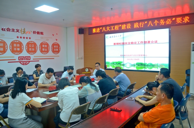 7月8日,现代教育技术与信息管理中心召开暑期校园安全稳定工作部署会议,学习传达了校党委有关暑期校园安全稳定工作会议精神,并对暑期疫情防控和部门“百日攻坚”工作进行再部署再落实。中心主任曾海滨主持会议,全体教职工参加会议。