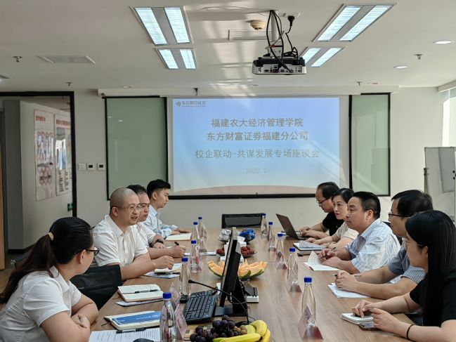 7月14日下午,院党委书记张开晃、副院长李坤明一行赴东方财富证券股份有限公司福建分公司开展访企拓岗促就业专项活动。公司总经理李水金热情接待了张开晃一行。零售管理部总监陈昌兴、综合管理部总监郭銮兵及相关项目负责人员,学院经济系教工党支部书记何均琳、文旅系教工党支部书记屈峰、毕业班辅导员等参加了活动。