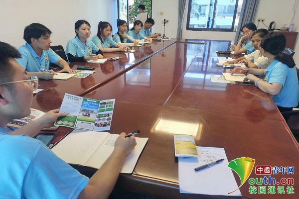 图为实践队队员发表对三下乡活动见解,陈副乡长发表建议。中国青年网通讯员 范嘉怡 摄