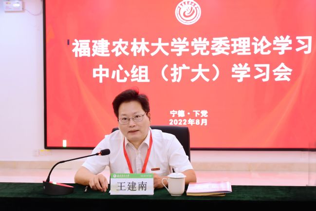 8月13日下午,校党委书记王建南在寿宁下党乡“难忘下党”学习基地主持召开校党委理论学习中心组(扩大)学习会,学习贯彻习近平总书记在省部级主要领导干部专题研讨班上的重要讲话精神,学习研讨《闽山闽水物华新——习近平福建足迹》,贯彻落实2022年全省高校领导干部办学治校能力专题研讨班精神。