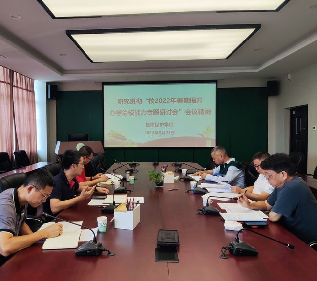 8月22日上午,植物保护学院党委召开专题会议,研究贯彻“校2022年暑期提升办学治校能力专题研讨班”会议精神。学院党政领导班子参加会议,会议由院党委书记林栋主持。
