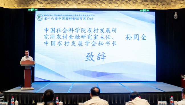 中国社会科学院农村发展研究所农村金融研究室主任、中国农村发展学会秘书长孙同全致辞