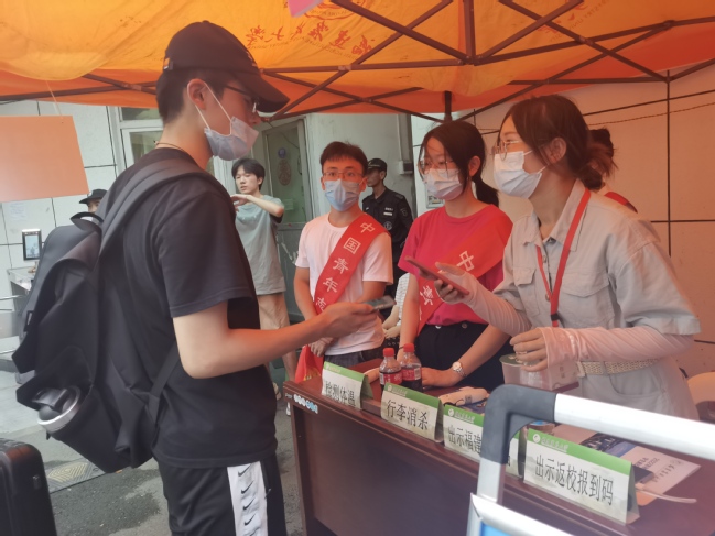 8月27日下午,学院驻点东苑开展学生返校接待工作,学院全体政工、学生志愿者一起协作查验、扫码,为我校学子返校安全保驾护航。学院党委书记曾起郁,院长阮晓菁来到桃山公寓深入学生宿舍走访慰问返校学生,与学生亲切交谈,详细了解他们暑期生活及本学期的学习安排,同时,学院领导叮嘱同学们要做好宿舍卫生,加强锻炼,遵守学校疫情防控相关规定,自觉维护校园安全稳定。