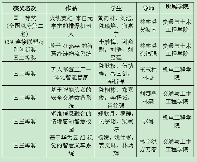 8月26日至27日,2022年华为杯全国大学生物联网设计竞赛全国总决赛于长沙湖南鲲鹏创新中心举行,我校共有六项作品获奖,其中一等奖一项,二等奖三项,三等奖两项。