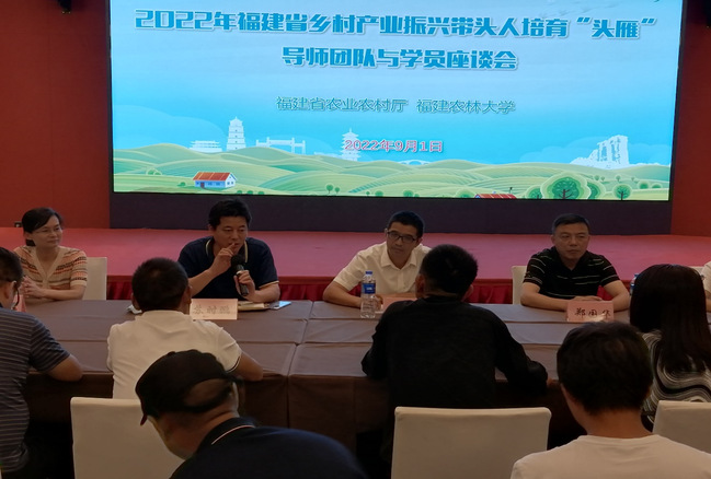 9月1日晚上19:00,由福建省农业农村厅主办,我校继续教育学院承办的福建省乡村产业振兴带头人培育“头雁”项目“把脉问诊”座谈会在福州如期举办。出席座谈会的导师团队分别是园艺学院党委书记肖红新、郑国华教授、副院长曾黎辉教授,继续教育学院院长苏时鹏教授与 “头雁”项目第一期培训班学员亲切座谈。