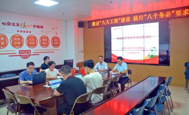 为进一步保障学校网络和信息系统的安全稳定运行,提升网络安全突发事件风险意识和应急处置能力,切实维护学校网络安全,8月31日,我校举行了网络安全应急演练。信息中心副主任曾海滨、网络安全与运行管理科有关人员和第三方运维技术人员共同参加。