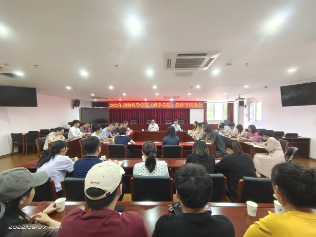 在第38个教师节来临之际,9月7日下午,动物科学学院(蜂学学院)在学院大会议室召开2022年教师节座谈会,学院领导、近年新进青年教师等参加。会议由学院党委书记陈为德主持。