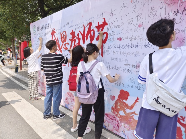 校区广大师生积极参与此次活动,以手写、手绘的形式将自己想对老师说的话写在签名墙上,为辛劳付出的老师们送上最真诚的祝福。