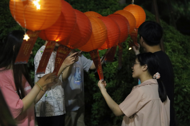 饼香忆团圆,校学生会、校研究生会、食品科学学院、风景园林与艺术学院等分别开展手工月饼制作活动,分馅料、揉饼皮、压模型,沉浸式体验中秋的团圆氛围,让师生们在体验月饼DIY的过程中,感受不一样的中秋佳节;花灯寄祝福,材料工程学院、资源与环境学院、林学院、安溪茶学院等的同学们制作彩绘纸灯笼、共绘中秋团扇,一盏盏明亮的小灯笼悬挂在宿舍楼的挂绳上,点亮了农林大学子的心田;游园闹中秋,交通与土木工程学院举办了中秋趣味游园会,华服霓裳,歌声悠扬,猜灯谜、飞花令、制书签、玩搏饼、穿汉服,展现出独属于中华传统的魅力,生命科学学院开展艺术插花活动,抒发对花好月圆人团圆的祝福。