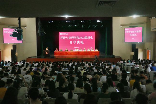 9月12日上午,经济与管理学院2022级新生开学典礼暨入学教育大会在校大礼堂举行。学院党政领导出席典礼,各系主任、新生班主任、辅导员和全体2022级新生参加典礼。典礼由经济与管理学院副院长管曦主持。