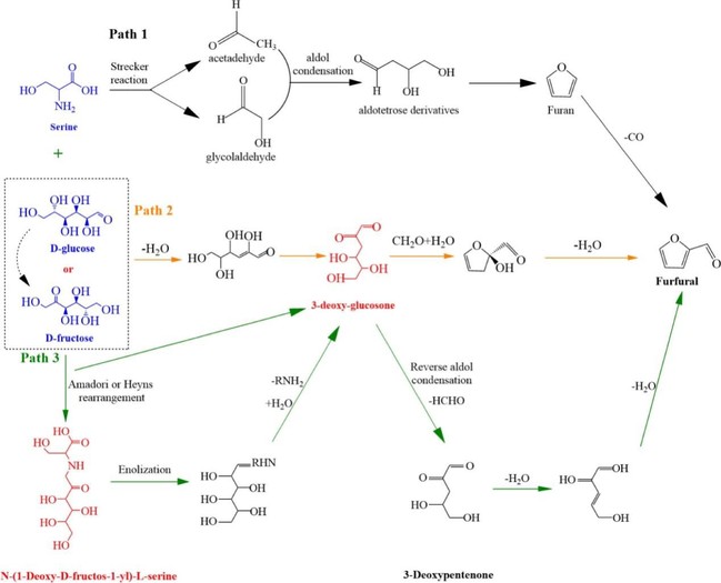 2022年9月19日,食品科学领域国际权威期刊Food Chemistry在线发表了我校国家甘蔗工程技术研究中心产品高值化利用研发室题为“Precursors and formation pathways of furfural in sugarcane juice during thermal treatment”的研究论文。该研究基于果糖/葡萄糖-丝氨酸模拟体系揭示了蔗汁热处理过程中糠醛形成的关键中间产物和3条主要形成路径。