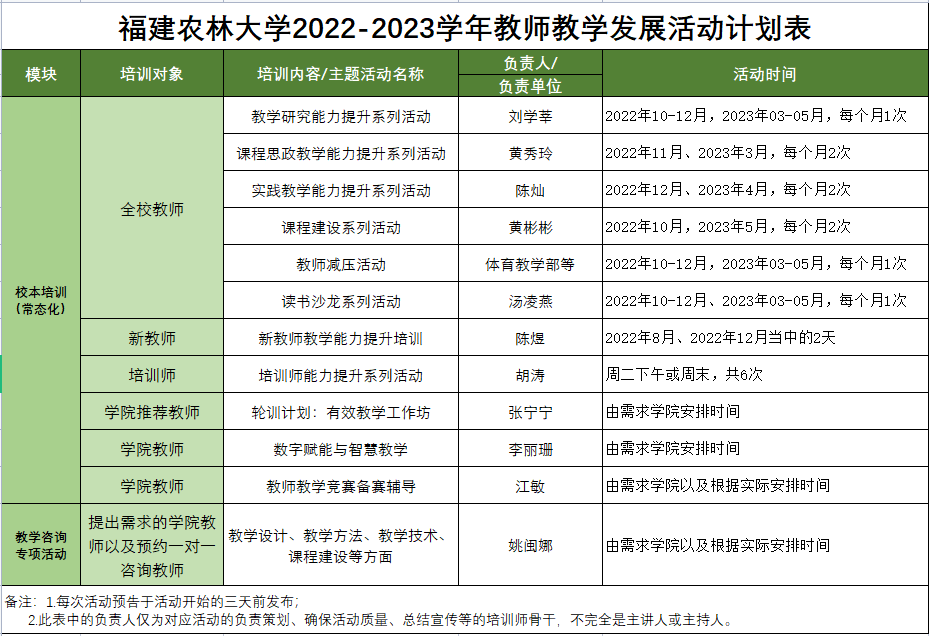 开云网页版2022-2023学年教师教学发展活动计划表.xlsx