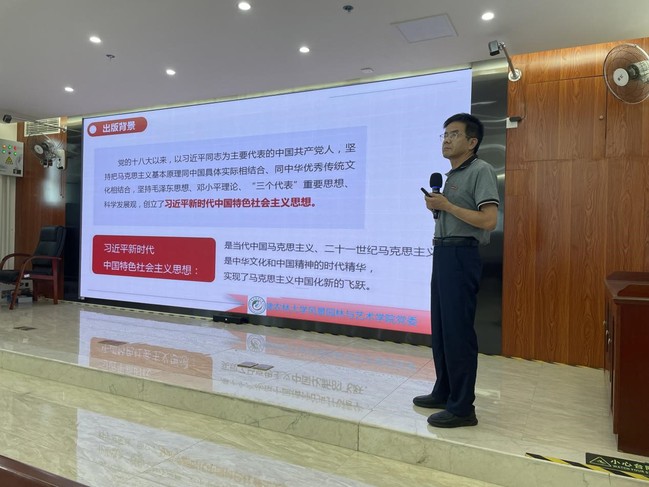 9月23日下午,风景园林与艺术学院党委书记雷国铨在旗山综合楼1204会议室为全院教职工做题为《读懂用好<习近平谈治国理政>第四卷,扎实推进学院高质量发展》专题党课。