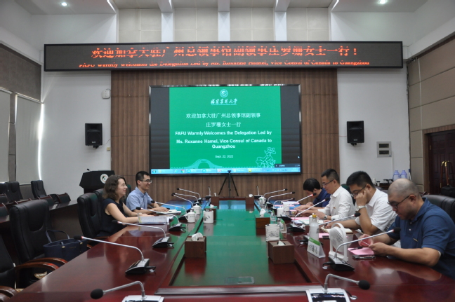 9月22日下午,加拿大驻广州总领事馆副领事庄罗珊女士(Roxanne Hamel)一行2人莅校调研我校与加拿大高校教育合作情况,并与我校参会人员一起在明德楼武夷厅参加了与加拿大木业协会的线上视频会议,就推动我校与加拿大木业协会开展林、木业领域教育和培训合作进行探讨。国际处、国际学院、林学院、风景园林与艺术学院、交通与土木工程学院及材料工程学院相关负责人和代表参加了座谈。