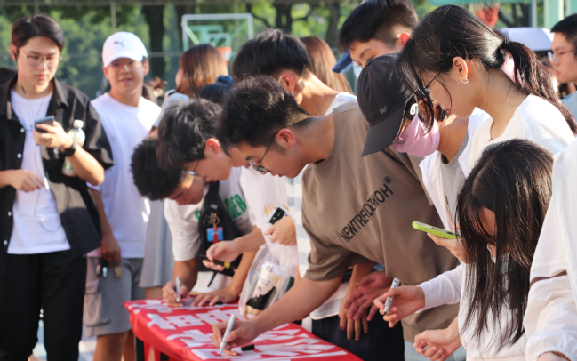 校创建文明宿舍先进个人,2020级生态学(中加)专业常佳瑞作为学生代表宣读《喜迎二十大,共筑平安校园倡议书》,倡议广大同学做到“十不”行为,共同营造平安和谐校园环境。现场,全体全体政工干部为学生电动车粘贴安全警示标识,师生们集体在安全标语条幅上签名,启动仪式圆满落幕。