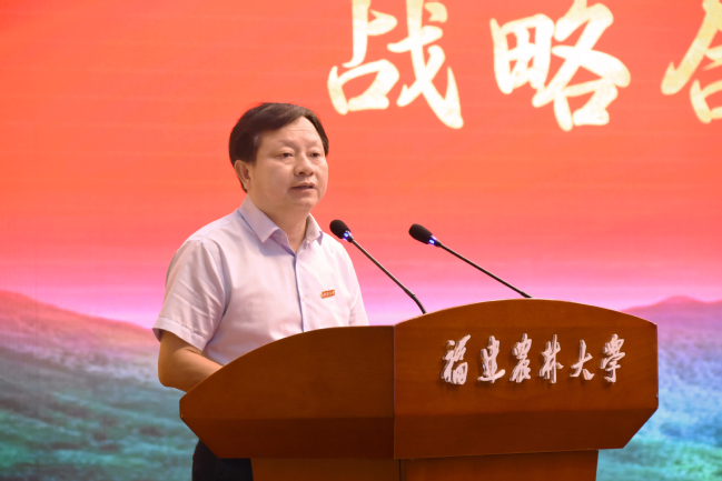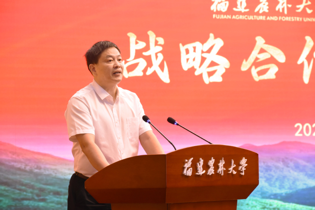 兰思仁代表学校对各位领导嘉宾的到来表示热烈的欢迎和衷心的感谢。他指出,双方面向国家和福建省林业领域的重大需求开展科技攻关,建立了深层次合作关系。此次双方进一步开启全面战略合作,有利于发挥双方优势,推动我省林业领域的“科学研究、人才培养、社会服务”。他希望,通过战略合作,联合开展科研攻关,促进我省林业科技创新;共建共享平台资源,联合培养林业科技创新人才;联合开展社会服务,共同助力我省林业现代化建设和乡村振兴,以实际行动为全方位高质量发展超越做出更大贡献。
