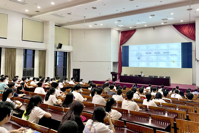 9月27日晚,金山学院党委副书记李晓辉在开云网页版安溪校区学术报告厅为学院(安溪)2022级新生做题为“转变、适应、成长——漫谈中学生向大学生跨越”的新生入学适应教育讲座。金山学院学生处负责人,新生辅导员和200多名新生代表参加讲座。
