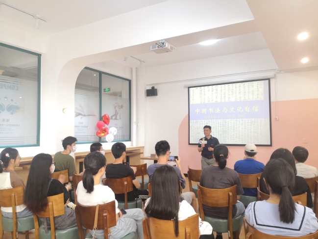 为了丰富大学生的文化生活,营造爱国爱校的氛围。9月30日下午,在北区生活驿站,生活课堂特邀请国家级一流本科课程《书法学堂》负责人冯辉荣教授,为同学们带来主题为“中国书法与文化自信”的课堂。全校35名大学生书法兴趣爱好者参加。