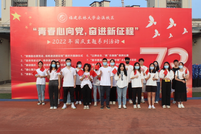 据悉,国庆期间,全校各级团学组织共将分阶段开展为期15天的系列主题活动58场,涵盖思想引领、文化体验、素质拓展等类别,丰富多彩的活动传递着青年一代对祖国的深情,生在红旗下,长在春风里,农林大青年将以青春昂扬的姿态迎接党的二十大胜利召开。