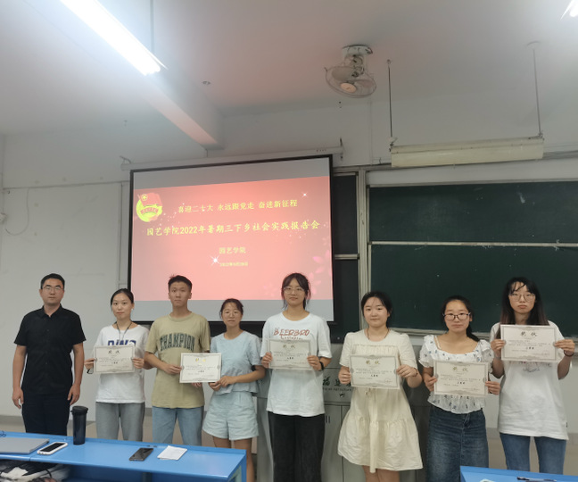 9月28日晚,园艺学院于禧强楼402举办“喜迎二十大 永远跟党走奋进新征程”暑期三下乡实践成果线下报告会,共有14支社会实践队参加汇报,学院团委副书记马端山,副科级辅导员王捷、团学主要学生干部、社会实践队成员和2022级新生代表参加本次报告会。