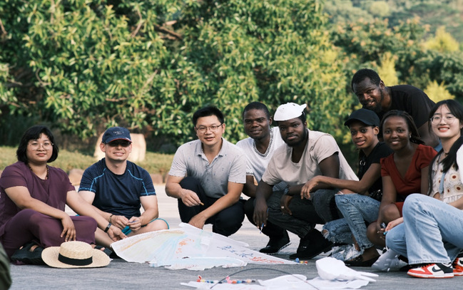 本次活动首先向中外学生们介绍了风筝文化与内涵,接着通过游戏的方式让大家挑选风筝和颜料,随后中外学生组队设计风筝绘画内容、共同描绘美好未来、齐心协力展翅高飞。
