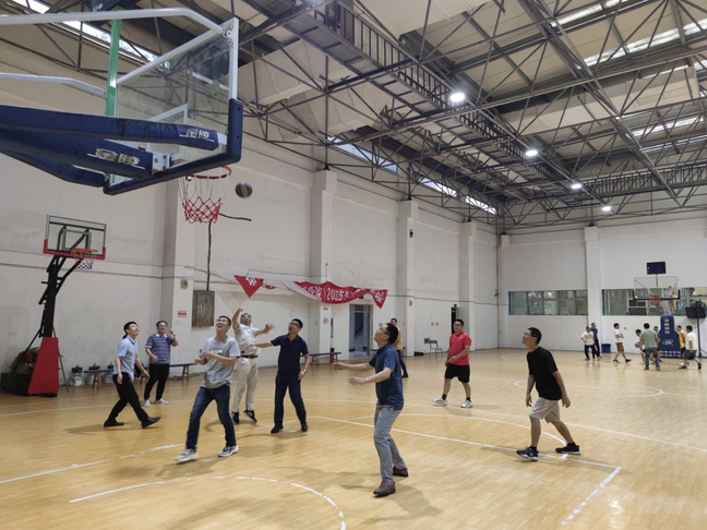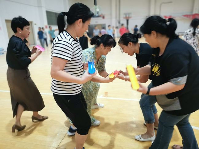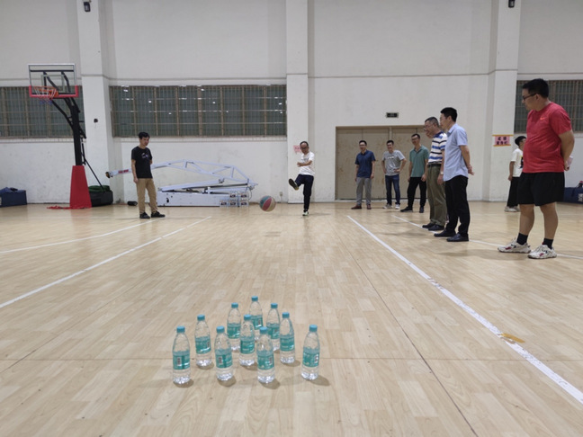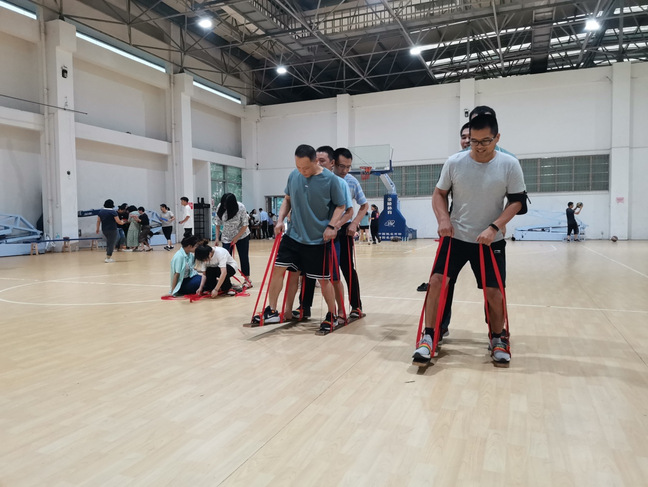趣味运动会共设置了四项团体活动项目(同舟共济、同心接力、篮球友谊赛、排球友谊赛)和三项个人活动项目(定点投篮、足式保龄、跳绳)。比赛现场教职工们个个精神抖擞、热情高涨,运动场上不时响起阵阵的加油声和欢呼声,处处洋溢着激情、活力。