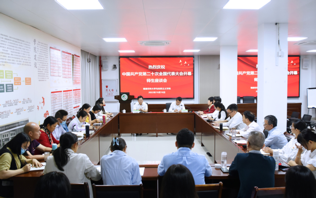 10月16日,在收听收看中国共产党第二十次全国代表大会直播后,校党委书记王建南来到马克思主义学院,与学院师生座谈交流,学习领会党的二十大精神。会议由校党委副书记、马克思主义学院党委书记柯瑞清主持。