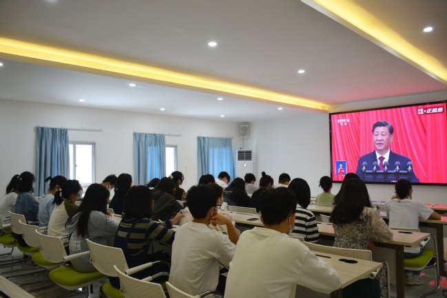 10月16日,中国共产党第二十次全国代表大会在北京人民大会堂隆重开幕。我校学工系统在大礼堂、辅导员工作坊、“一站式”学生社区、学生宿舍等场地组织辅导员和全体学生集中观看了开幕会现场直播盛况,认真聆听了习近平总书记代表十九届中央委员会向大会所作的报告。