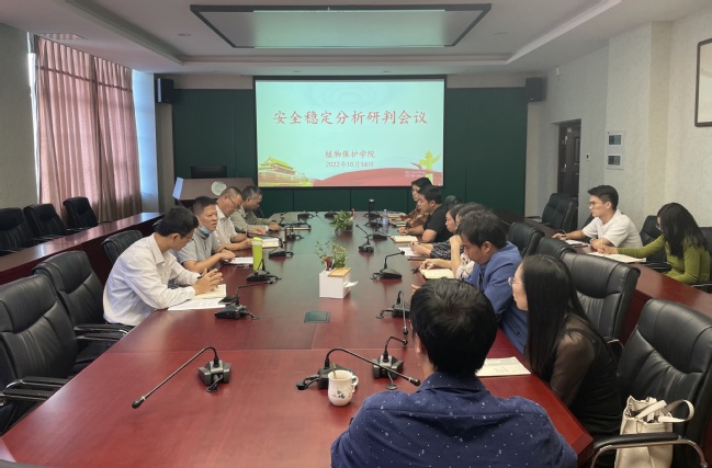 近日,植物保护学院在博学楼703会议室召开安全稳定工作分析研判会,学院党政领导班子成员、系主任、科级干部和全体辅导员参加会议,会议由学院党委书记沈必胜主持。