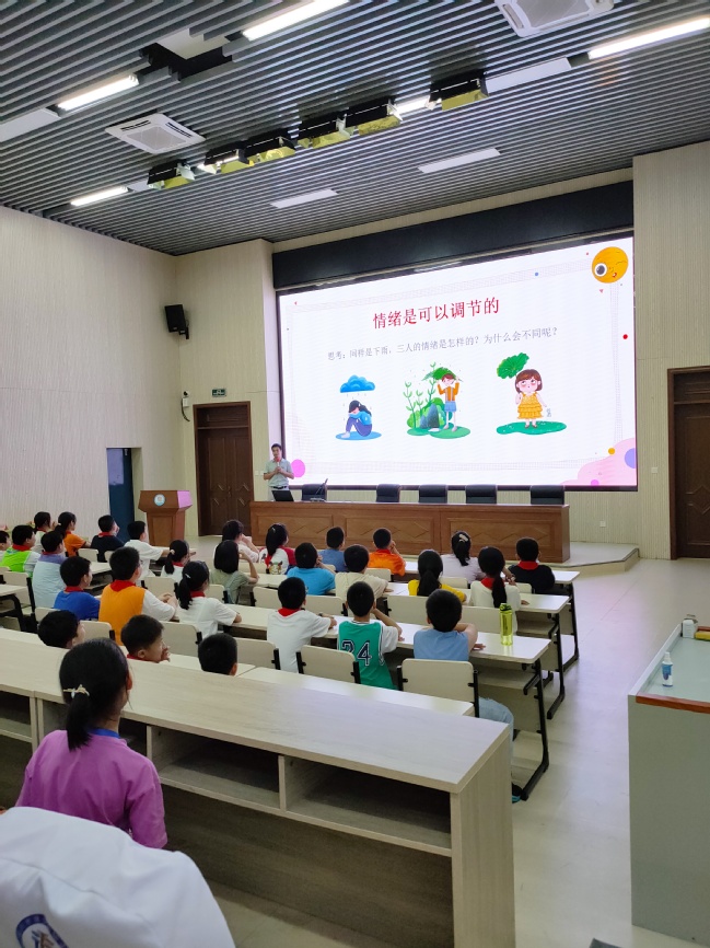 志愿服务活动以心理健康讲座形式开展。讲座以《学会调节情绪》为主题,由教师志愿者代表、爱帮义务维修队党支部书记叶善斌主讲。讲座中,叶善斌围绕情绪是可以调节的、情绪如何调节以及调节情绪的活动三个方面展开。叶善斌采用情景对话、案例分析、提问互动等小学生喜爱的方式,逐步拉近与孩子们的距离,引导孩子们学会正向与人沟通、科学解决问题、正确看待挫折等情绪管理办法。叶善斌最后还分享了情绪调节的若干建议,勉励同学们积极面对成长路上挫折,健康快乐的成长!