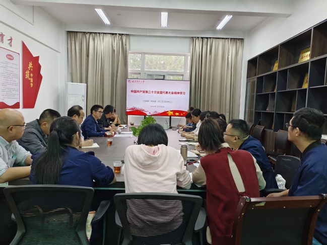 10月18日下午,机关党委第八支部(学工部、学生创新创业中心)召开全体党员大会,学习党的二十大会议精神,肖红新主持会议。