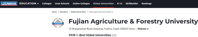 10月25日,US News发布2023世界大学排行榜,涉及85个国家,超过40个学术专业领域。中国共有382所高校入围US News2023世界大学排行榜,其中内地高校338所。我校位居世界第930名,中国内地第96名,中国内地农林类高校第7名,省内高校第3名。