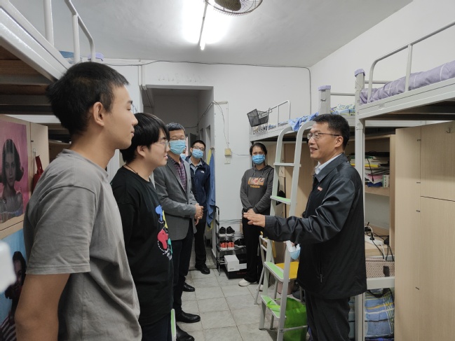 11月2日下午,校党委副书记柯瑞清深入东苑学生宿舍区,走访慰问在校学生和住校辅导员。学工部及相关学院负责人随同走访。