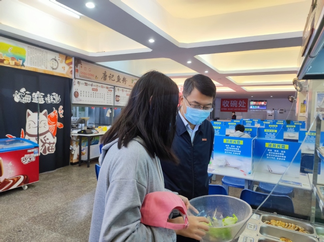 随后,柯瑞清来到东苑学生餐厅深入了解学生用餐需求,要求经营单位要细化优化供餐方案、增强食品安全意识,提高服务水平,全力为师生做好就餐服务。