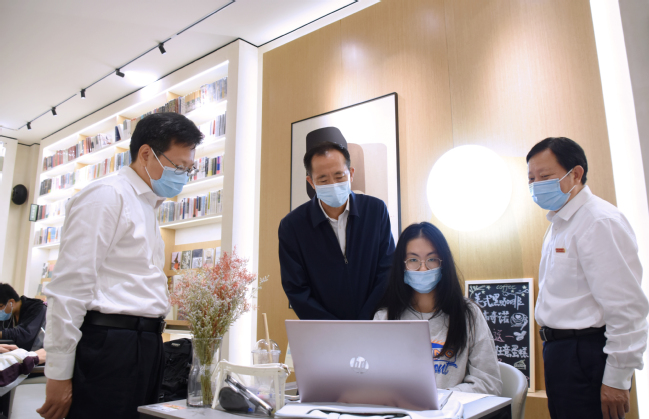 座谈会后,李德金一行实地察看了我校大梦书屋,与学生亲切交流。