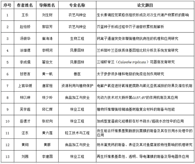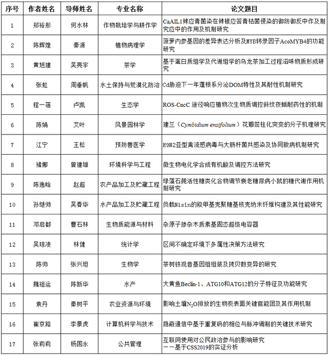 我校获得2021年福建省优秀学术学位硕士学位论文名单